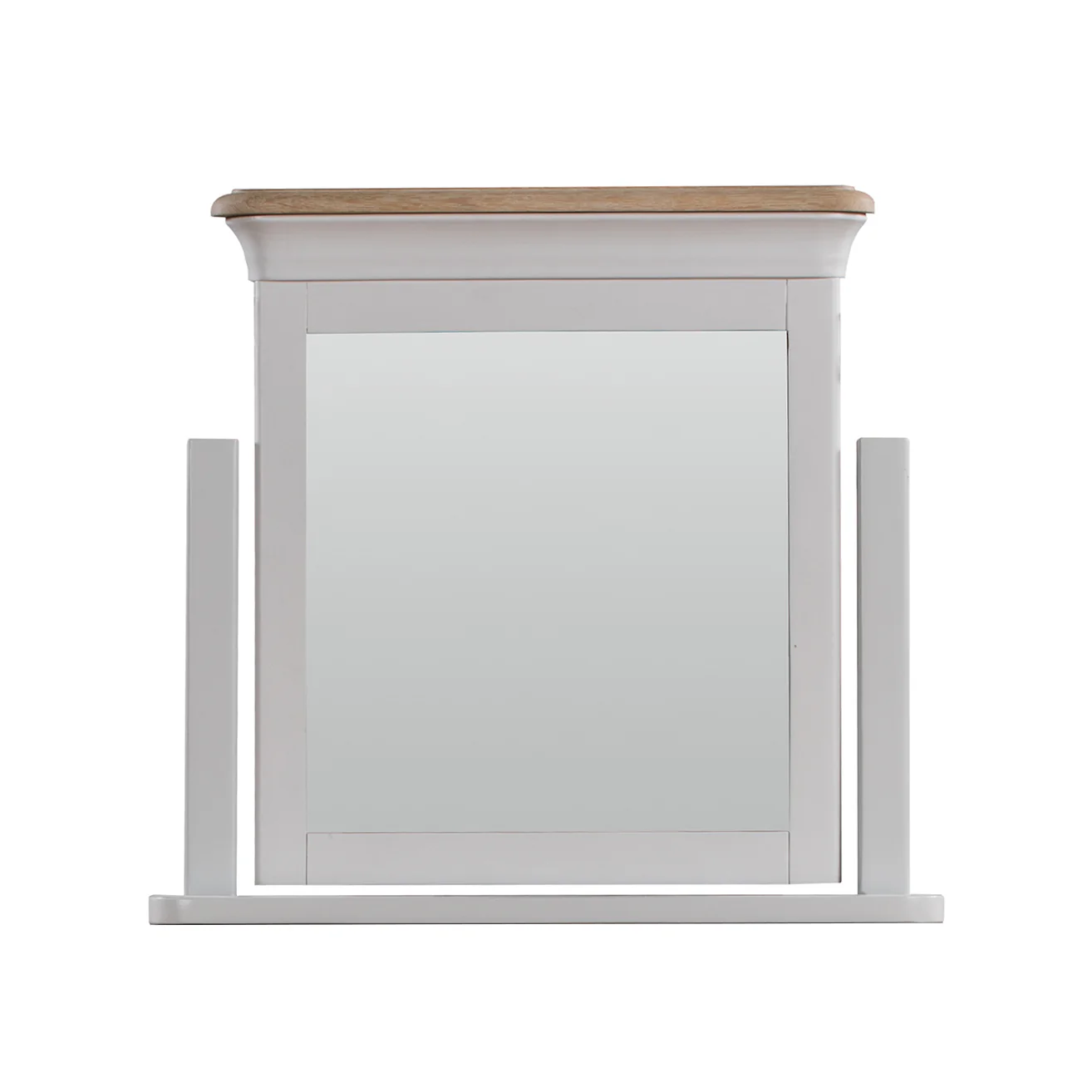 Offering the perfect complement to our Brighton Grey dressing table, this smart tilting mirror lets you check your appearance from all angles. The soft grey painted finish and contrasting lime-washed Oak top is a fabulous on trend neutral colour which blends seamlessly in to any décor and works equally well in modern and traditional interior design styles. The sturdy base sits neatly on top whilst leaving plenty of room for jewellery boxes and the like.