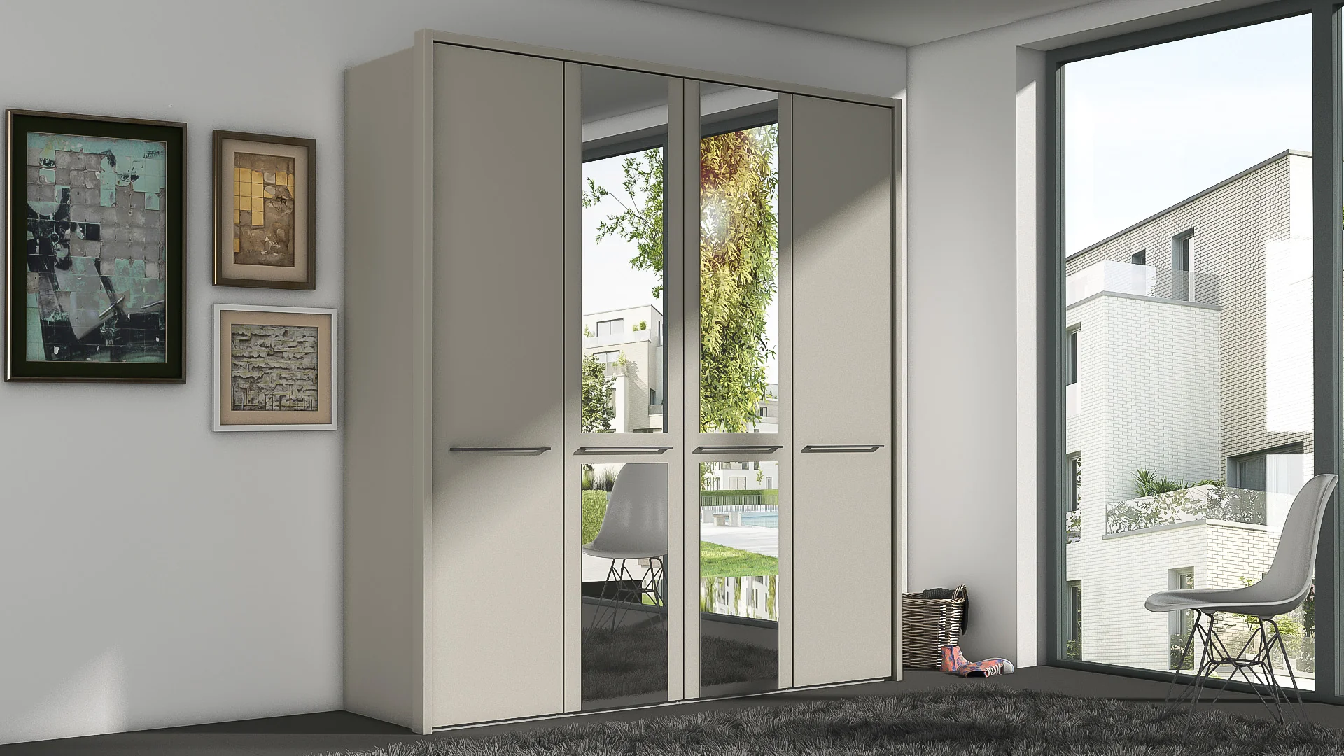 - Semi-fitted wardrobe functionality, sleek fitted furniture appearance.