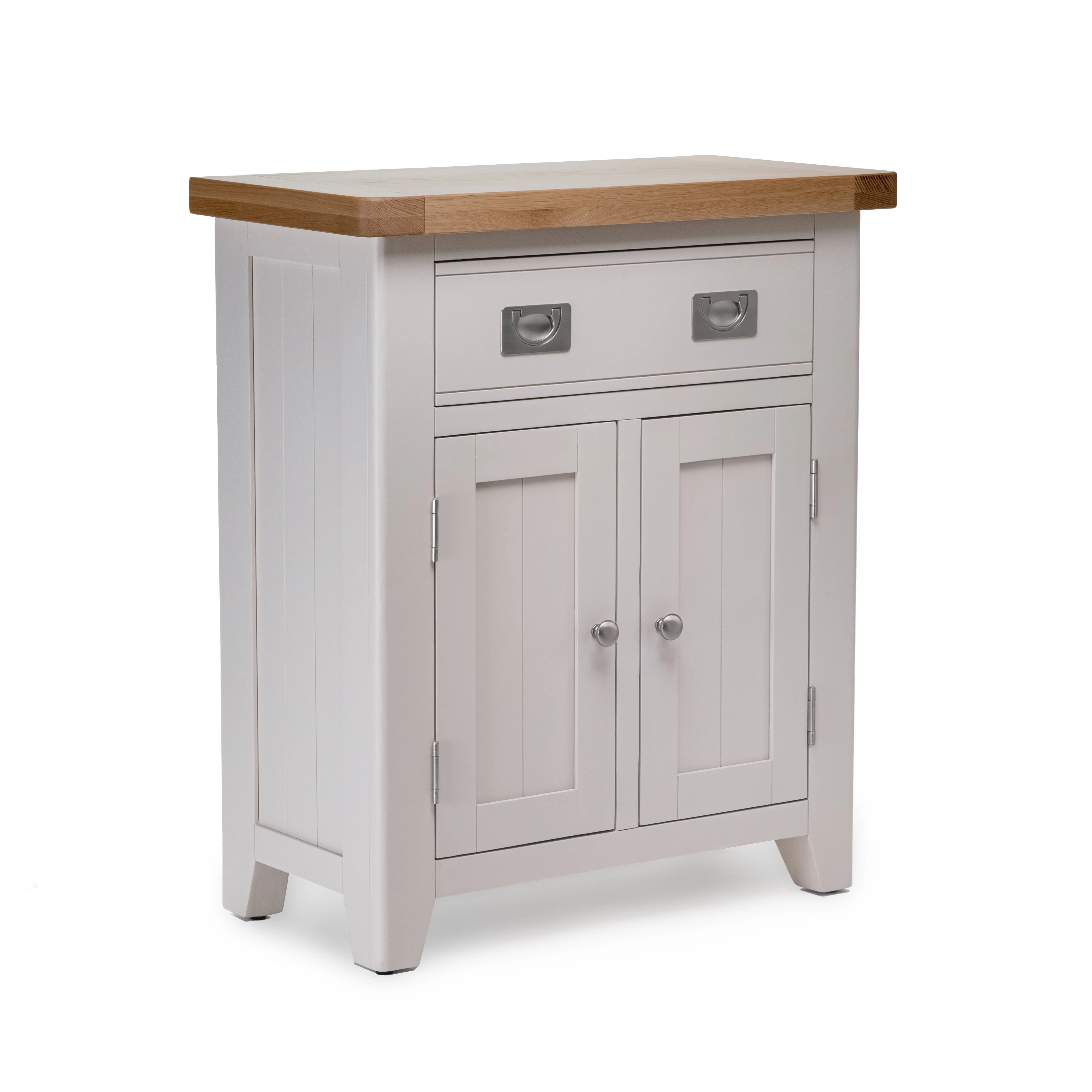 If you're looking for a smaller sideboard that still packs a punch in the storage department, look no further than this stunning piece of furniture. With its charming panelled design and soft grey painted finish, the Gloucester Small Sideboard will add a touch of contemporary country style to any kitchen, dining room or hallway. And with one full length drawer and two cupboards, you'll have plenty of storage space to play with. The flush pull handle gives the sideboard a seamless look, while the natural oak top adds a touch of warmth and character. And thanks to the clear lacquer finish, you can rest assured that your favourite ornaments and family photographs will be displayed in all their glory.