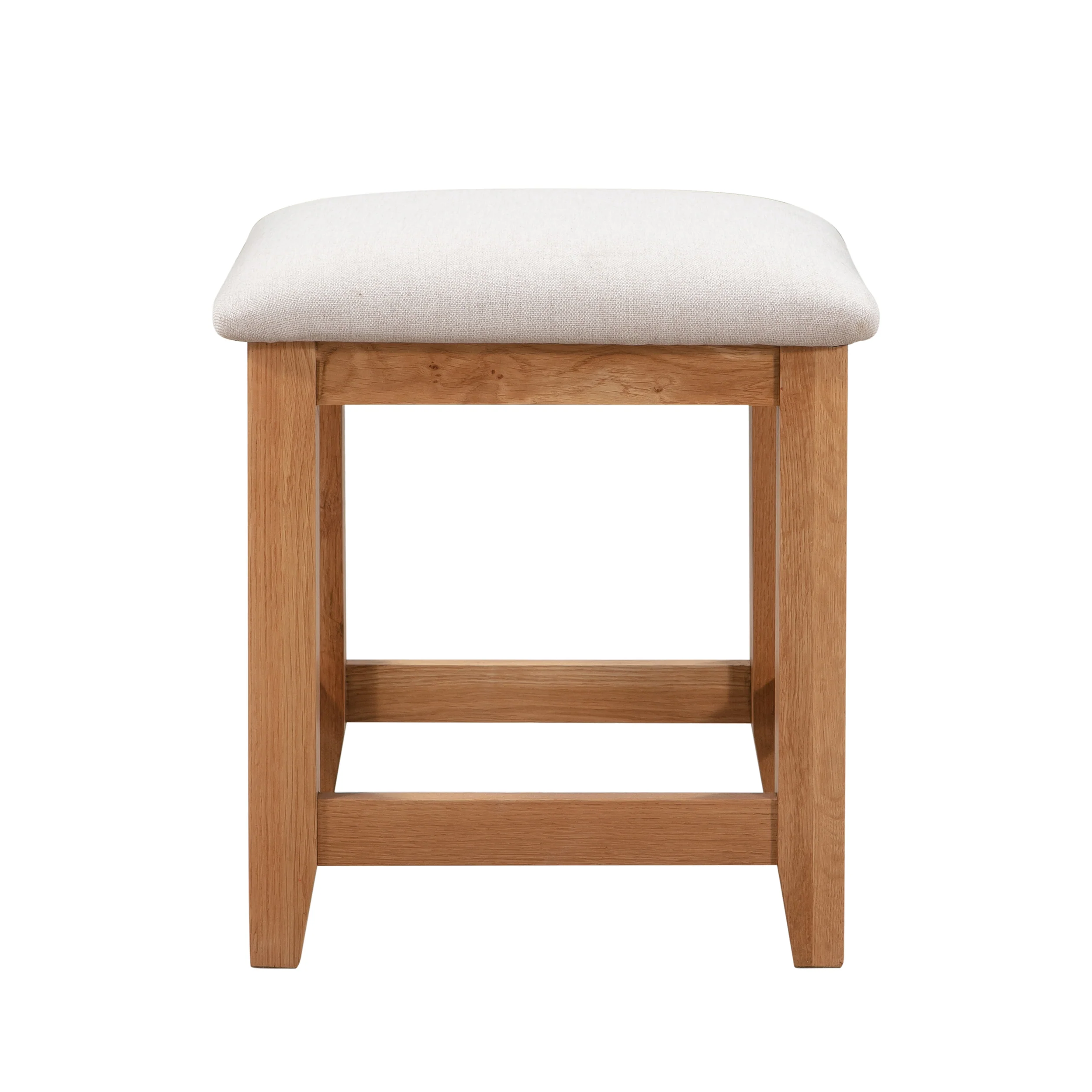 Sit pretty in style and comfort whilst getting ready. Our smart Sussex oak stool brings a contemporary space-saving spin to any living room or bedroom. Made of oak, this neat seat with fabric seat pad fits easily under our Sussex oak dressing table. This little gem can be just as easily used as a handy stool around the house too.